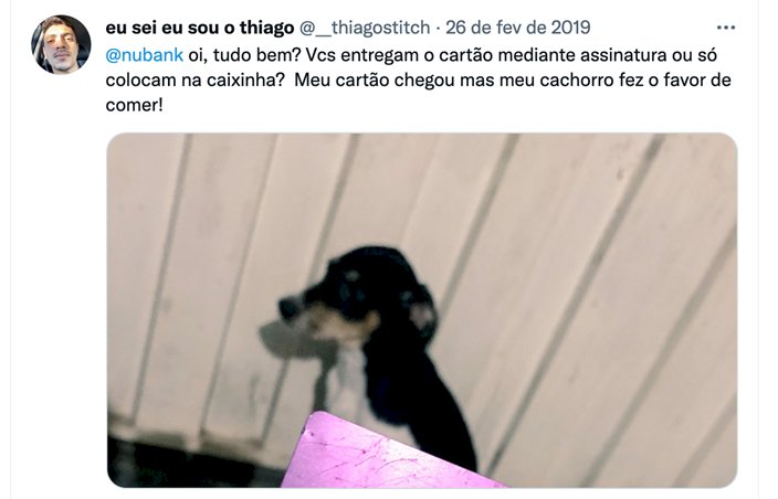 Não tem como brigar com essa cara de culpado Fonte: Reprodução/Nubank